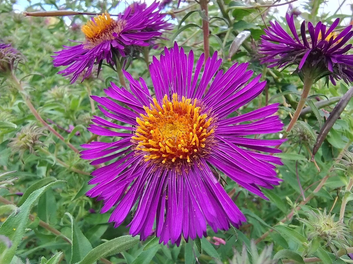 Deze hoge herfstaster heeft stevige stengels, maar heeft wel enige steun nodig.
